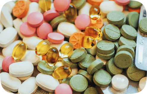 فيتامين B1, فيتامين B2, فيتامين B3, فيتامين B5, فيتامين B6, البيوتين أو فيتامين B7, فيتامين B12, فيتامين C, فيتامين D, فيتامين E, فيتامين K, فيتامين A, الكاروتينات, الكولين, البيتين, الإنزيم المساعد Q10 (CoQ10)