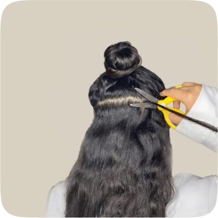 يقرب المقص من الجذور جيدا وتؤخذ خصلتين