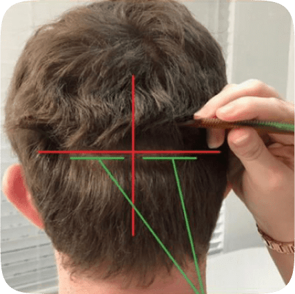 يحسب 2سم ونصف من الخصلتين باتجاه أقرب للجذور